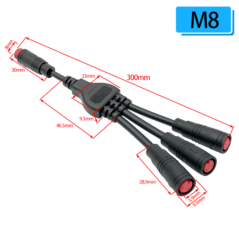 Engineered to achieve an IP67 protection rating (in line with IEC 60529 standards), the M8 1-to-3 waterproof connector provides complete dust ingress protection and can withstand immersion in 1 meter of water for 30 minutes, ensuring stable operation in humid, dusty, or wet workplaces such as factory assembly lines, outdoor sensor installations, and industrial robotics. The connector features a screw-locking mechanism that delivers secure, vibration-resistant connections, reducing downtime caused by accidental disconnections and environmental interference.